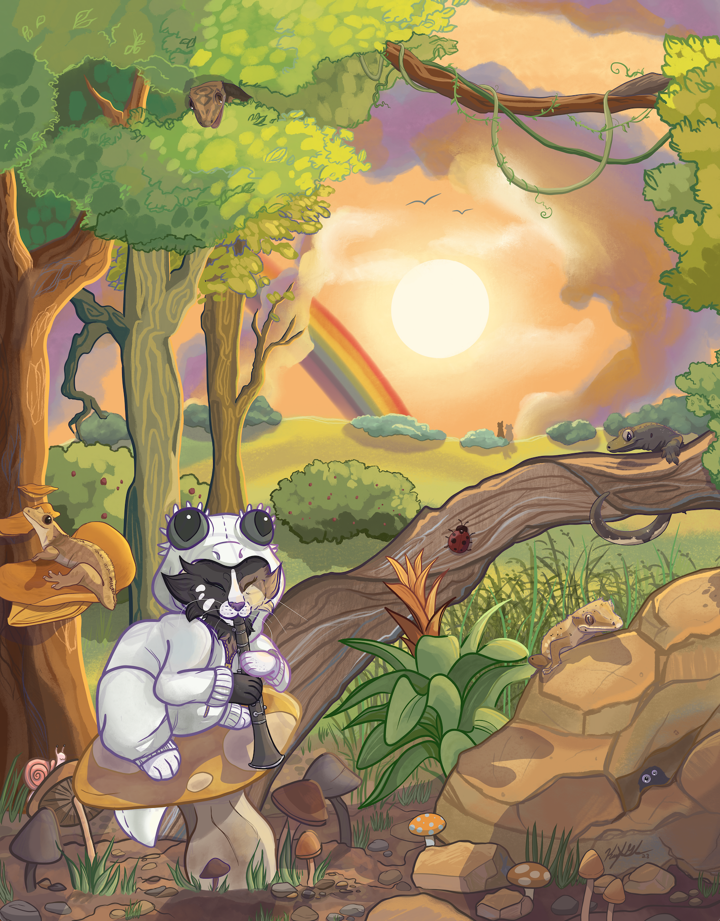 My concept was to include everything I loved most, because this was MY apartment, and nobody else’s! My favorite colors, pets, original characters, and clarinet all play starring roles.