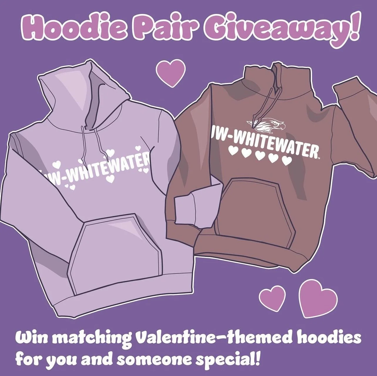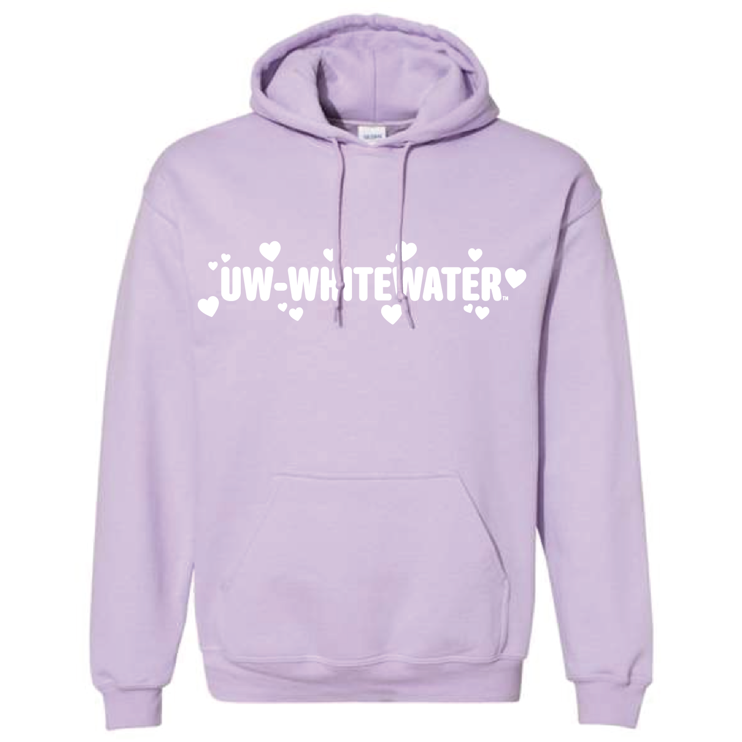 My mockup of a cutesy, branded UWW hoodie with Valentine hearts.