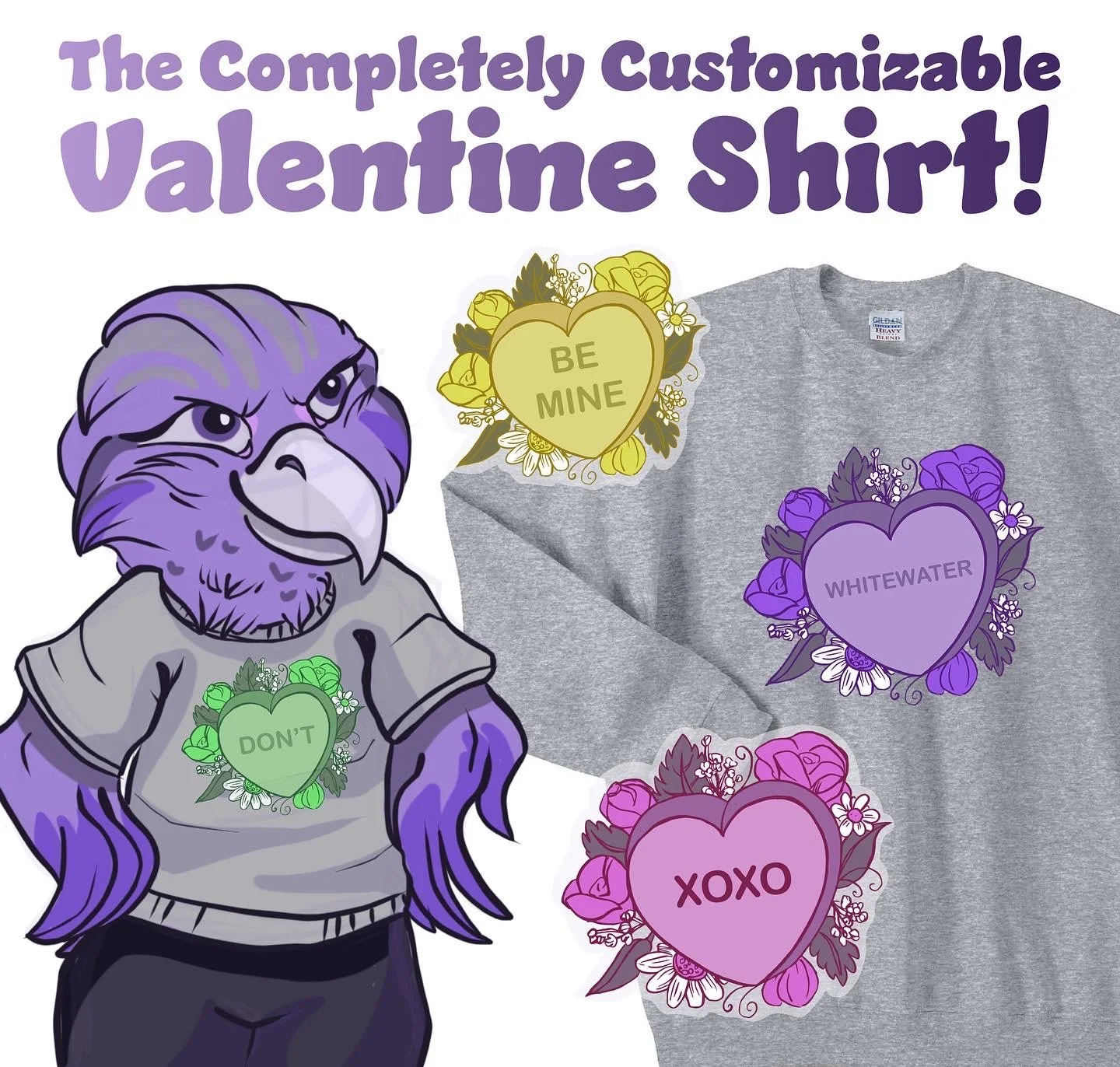 An early concept I had for the Custom Shop was to lean into our unique ability to personalize items. Because of our method of Direct-to-Film printing, changing a word or name on a shirt was as easy as exporting an art board from Illustrator. Although we didn’t get much engagement with this particular Valentine design, we found successful applications of this idea when we later made the Warhawk Family Catalog and Sports Catalog. Suddenly, customers could purchase a branded UWW design for essentially anyone in their lives, and all we had to do was press “print!”