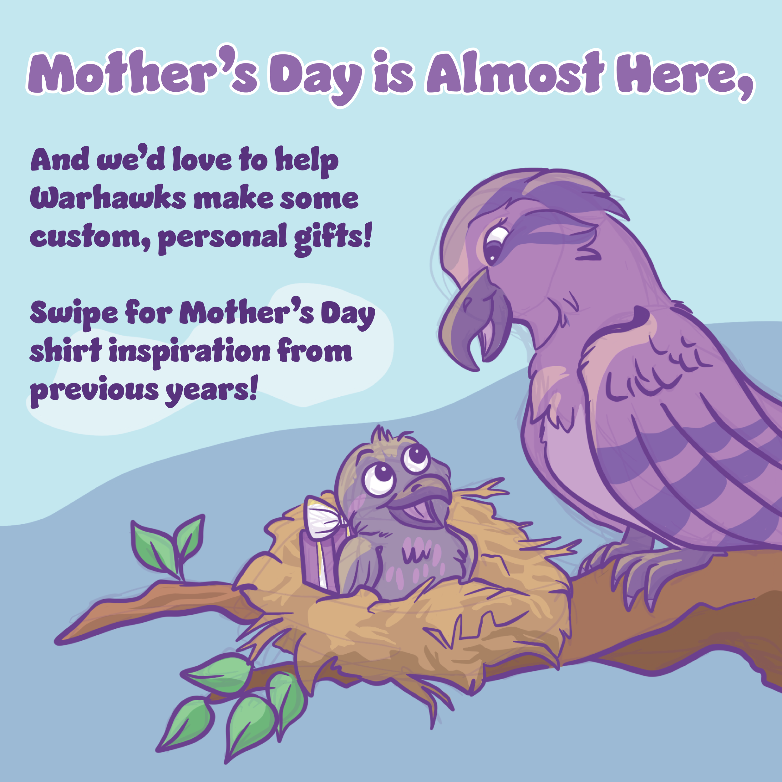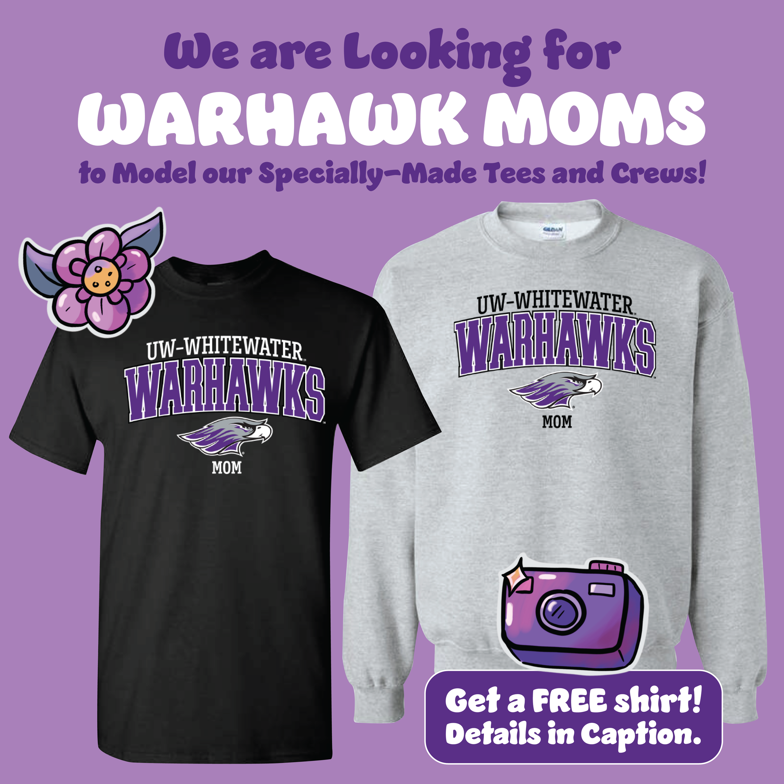 Posting more photos of customers wearing our products was always a goal and a challenge. We found that after we made a sale, it was often difficult to keep the customer engaged with us enough to send reviews and photos. One idea that worked was to occasionally offer free products to Warhawks willing to stop in and model for us. This post was scheduled a few weeks before Mother's Day, so we would have photos to promote our Warhawk Mom products.