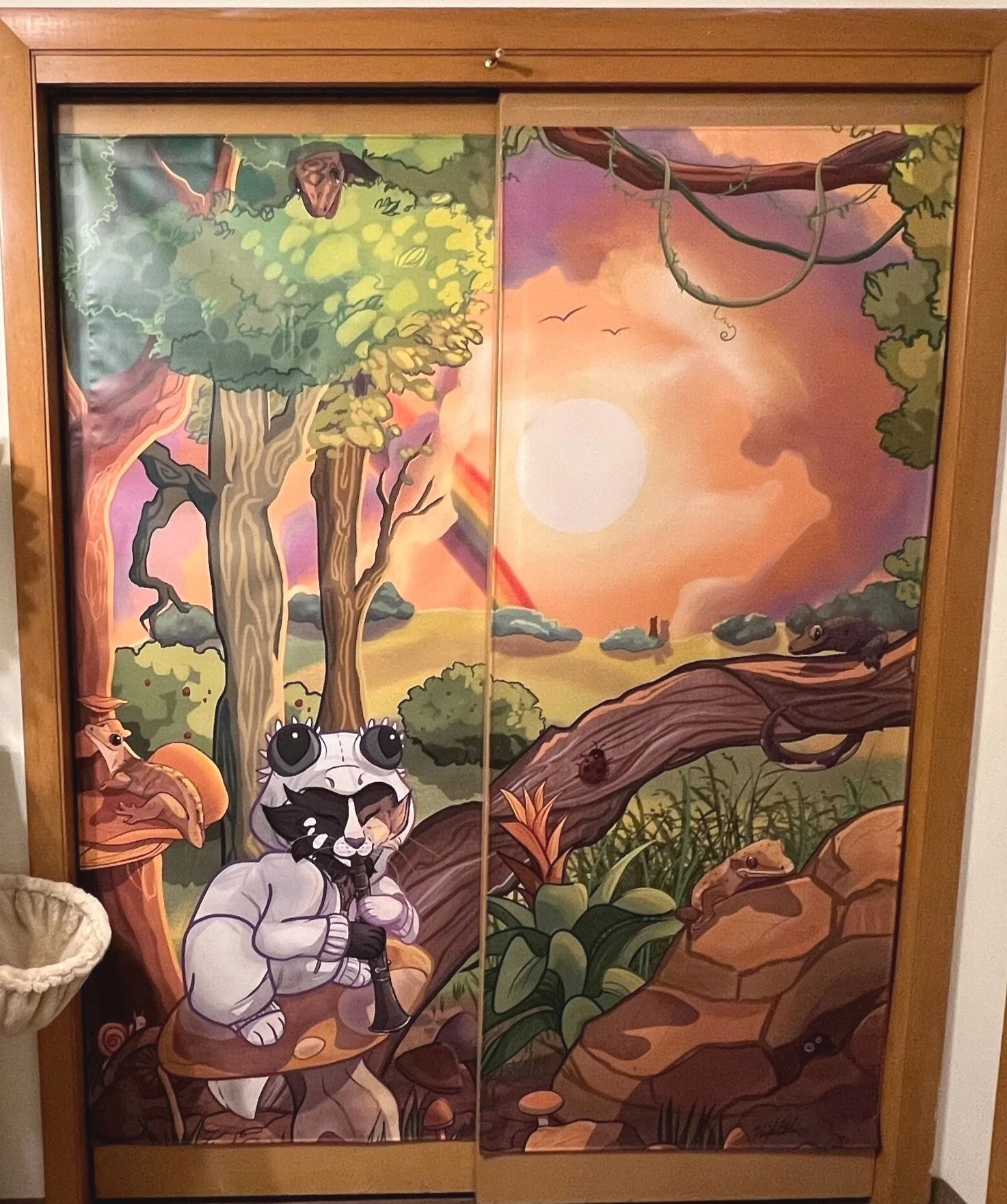Mapping out the shapes, colors, and measurements over a photo of the closet.